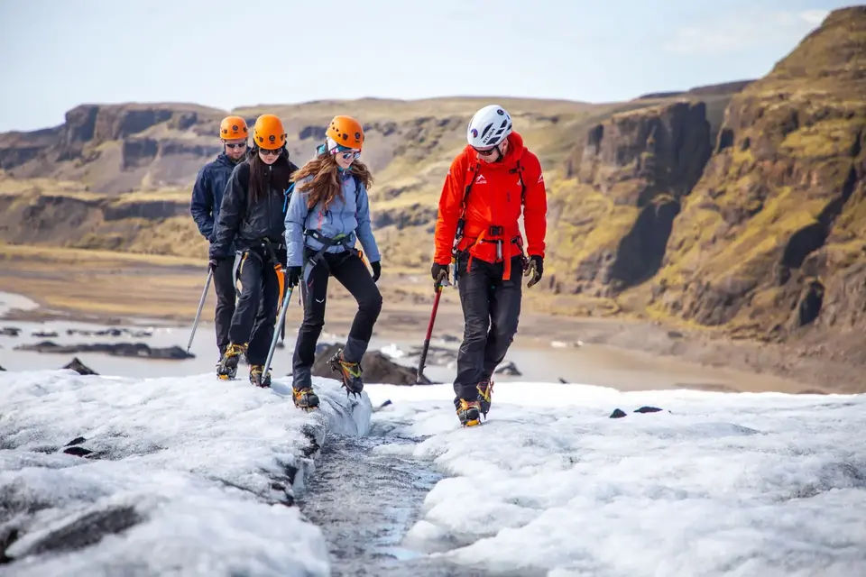 Start your adventure with a scenic 30-40-minute walk to the edge of the Sólheimajökull Glacier glacier. This approach lets you enjoy the beautiful Icelandic landscape while your guide prepares you for the glacier hike. You will receive a brief introduction to the safety procedures and learn how to use the provided equipment, including crampons and an ice axe.