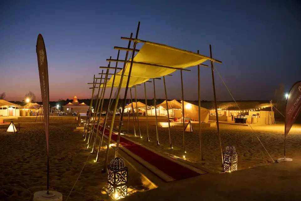 - Indulge in a luxury buffet with international and Arabian cuisine, along with BBQ stations and unlimited soft drinks in a Caravanserai Bedouin-style Desert Camp.